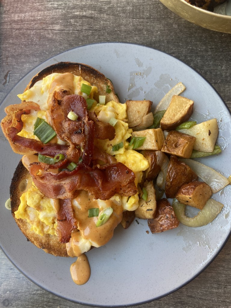 This was my first time trying an open-faced sandwich, let alone breakfast style. Pairing spicy chipotle with a bagel had never really crossed my mind, but pairs so well with all the other breakfast items. I would have preferred the bacon be chopped into smaller pieces so it doesn’t fall off every time you try to take a bite, but that’s a super small grievance.